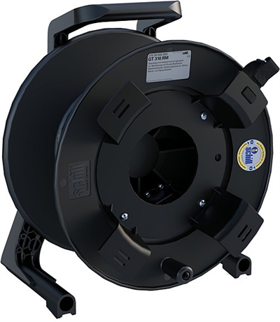Kabeltromle i speciel sort hård gummi uden stikforbindelser eller kabel.